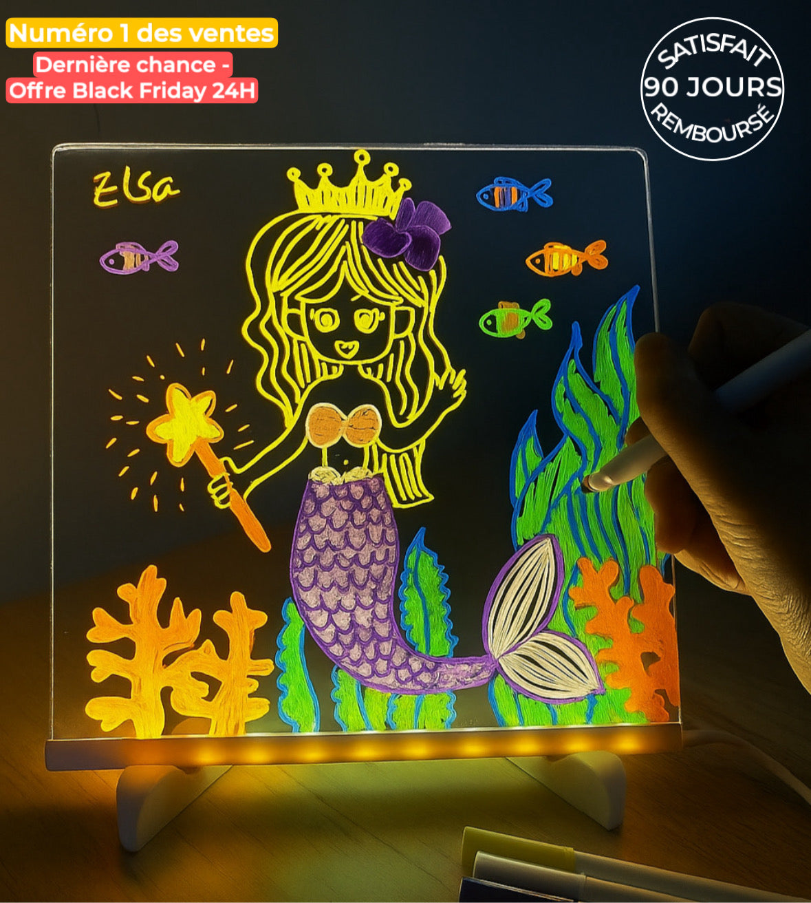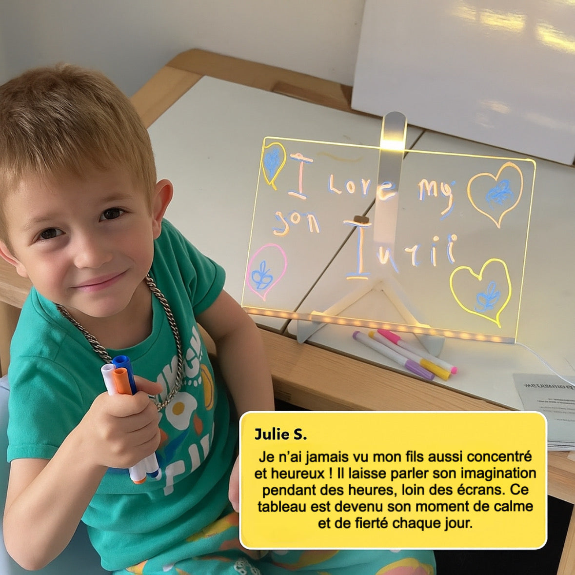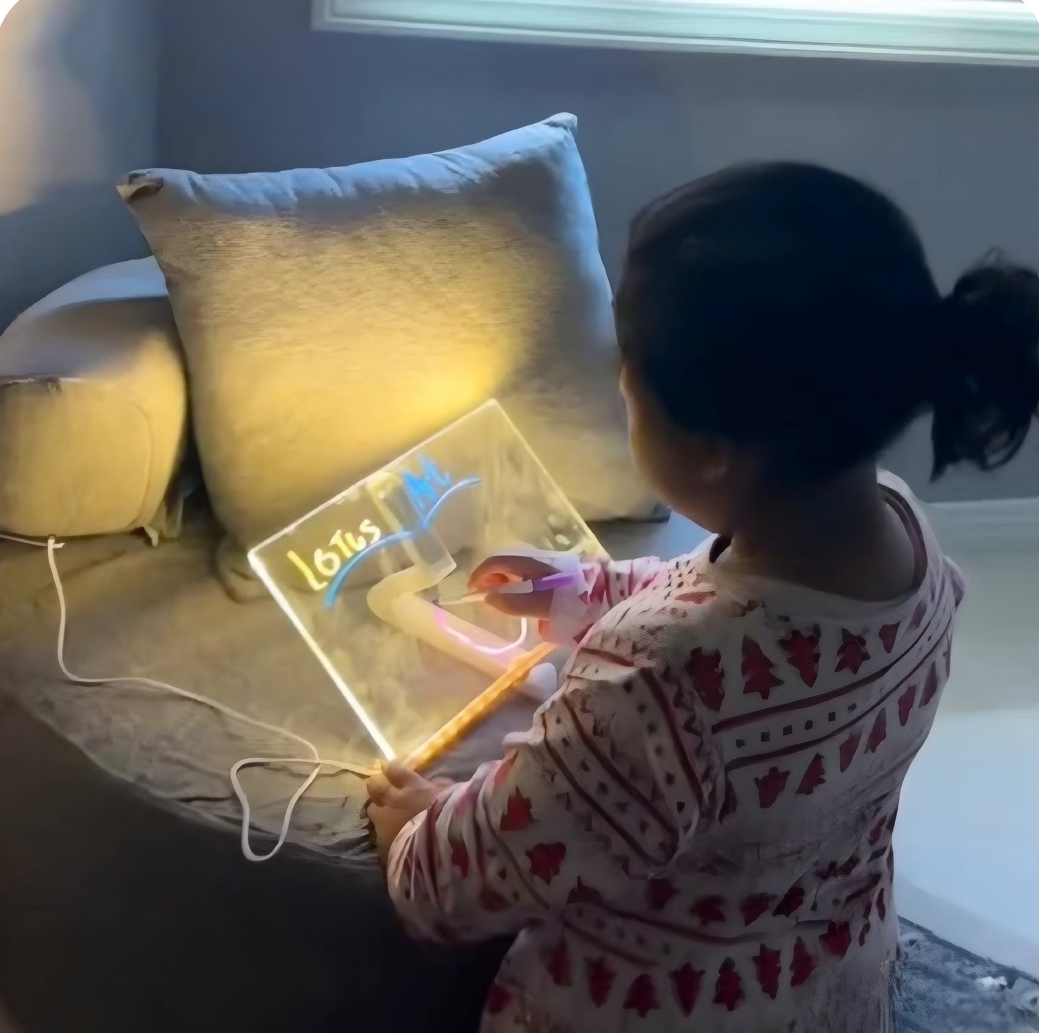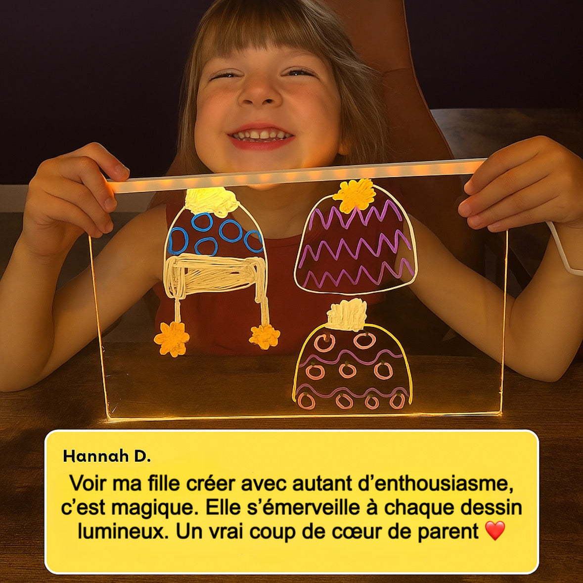 Libérez la créativité de votre enfant avec Glowkids™,le tableau Led magique.Parfait pour dessiner,écrire,ou même décorer une pièce ✨