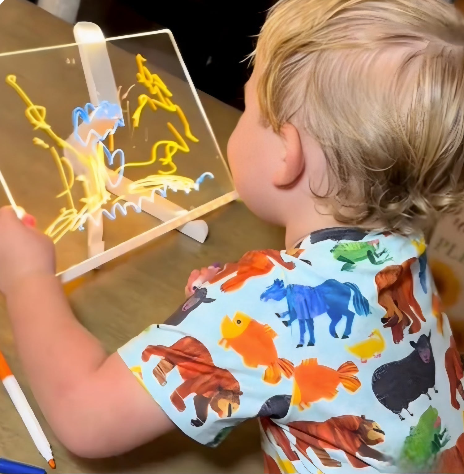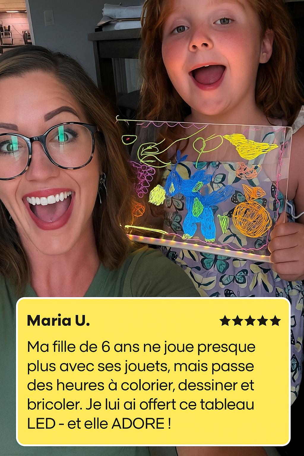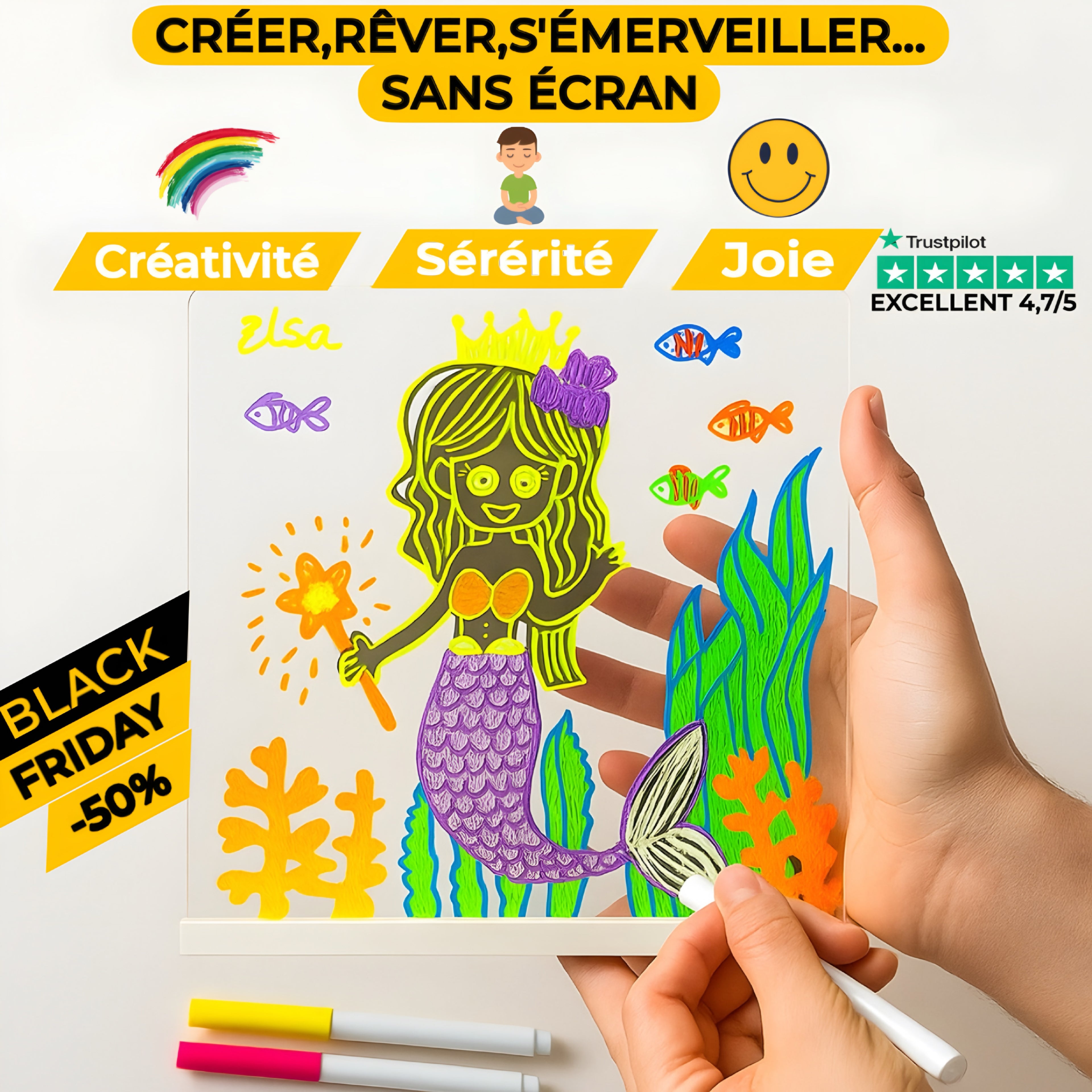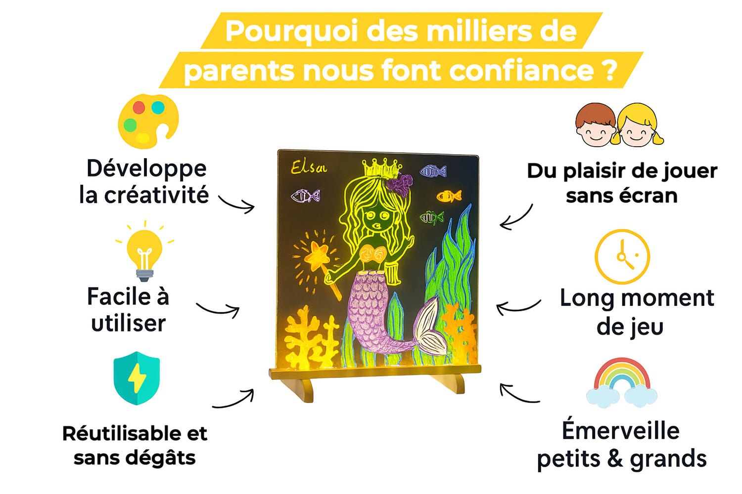 Libérez la créativité de votre enfant avec Glowkids™,le tableau Led magique.Parfait pour dessiner,écrire,ou même décorer une pièce ✨
